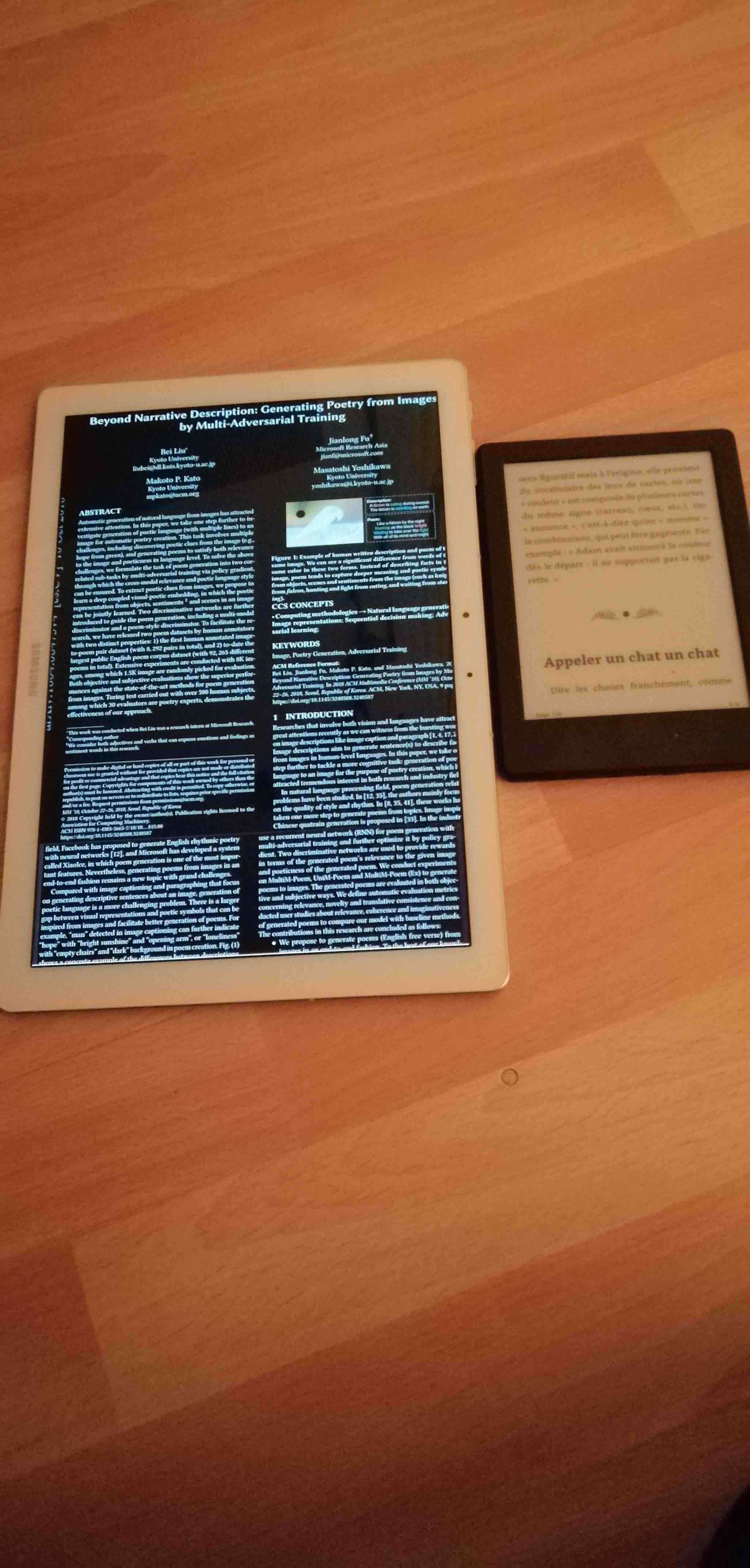 - Buy a second hand galaxy tab pro S with wonderfull 12' amoled screen (black color do not have light emission with oled screen) arround 300€ or any tablet device with large amoled screen - reset the windows 10 factory version and update it directly from the microsoft download website - activate the reverse colors display on windows 10 and choose a sepia color for caracteres - install Pdf reader by Xodo - activate the night mode in Xodo Conclusion: +incredible amoled screen +light emission only with text and images in Xodo pdf reader night mode +super speedy zoom on pdf +graphics and images in colors with converted colors in Xodo +70 gb free on the ssd disk +usb 3.1 micro sd card adaptator for 10€ +full useable internet browser +it’s a computer +budget divided by 3 with great performances and colors - it needs time to be comfortable with the reverse display mode (two weeks for me) - samsung keyboard is a bad keyboard - pen is not great to write - battery for 7 to 8 hours - second hand risk It works great for me (better than eInk ereaders) but not for all hard readers. My recommandation: try to test Xodo pdf reader night mode in an amoled or oled screen before to go (xodo is free and available for many operating systems) ![]() ![]()
