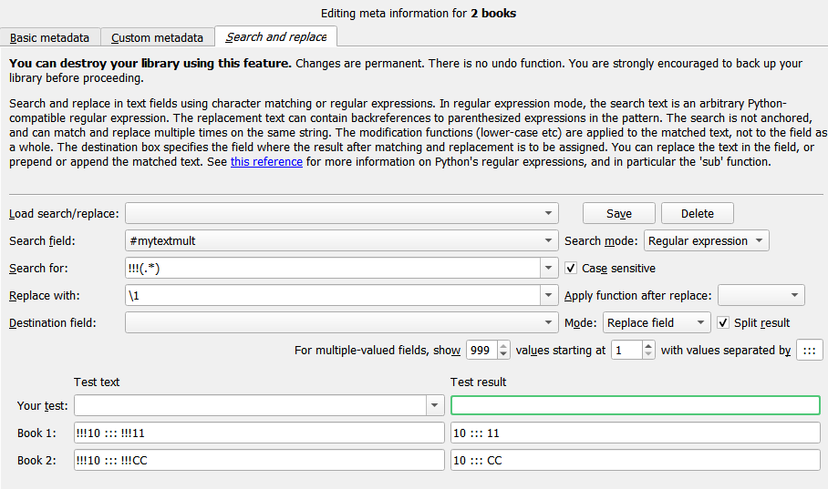 The following works to copy only the !!! tags to the new column. You will then need to use a second pass to delete those items from tags (easiest with the tag manager) and remove the !!! from the tags in the new column with S&R. The tags you want moved to the new column should be "marked" with !!!. This S&R does the job. The search expression is Code: