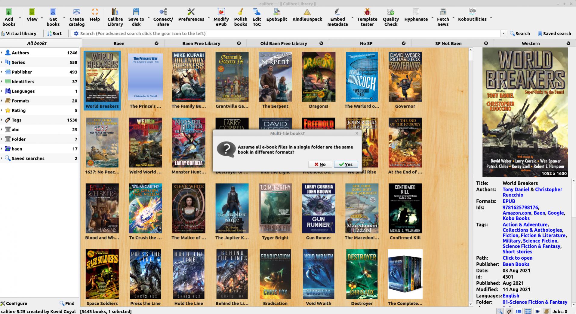 Answer yes: Select the folder that has the books you want to add Press ok: calibre will add all the book formats from that folder and all sub folders. Tested using calible 5.25 on a Linux Mint 20.2 system. bernie Last edited by gbm; 08-19-2021 at 05:46 PM. Reason: typo |