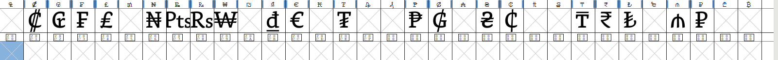 The 1.201 version also has more glyphs but again, if you don't read something that would involve displaying one of those glyphs, you wouldn't notice any difference. For instance, 1.010 has 4 currency symbols while 1.201 has 20. See the attached images from FontForge to see the supported glyphs. Last edited by DNSB; 01-11-2022 at 04:08 PM. |