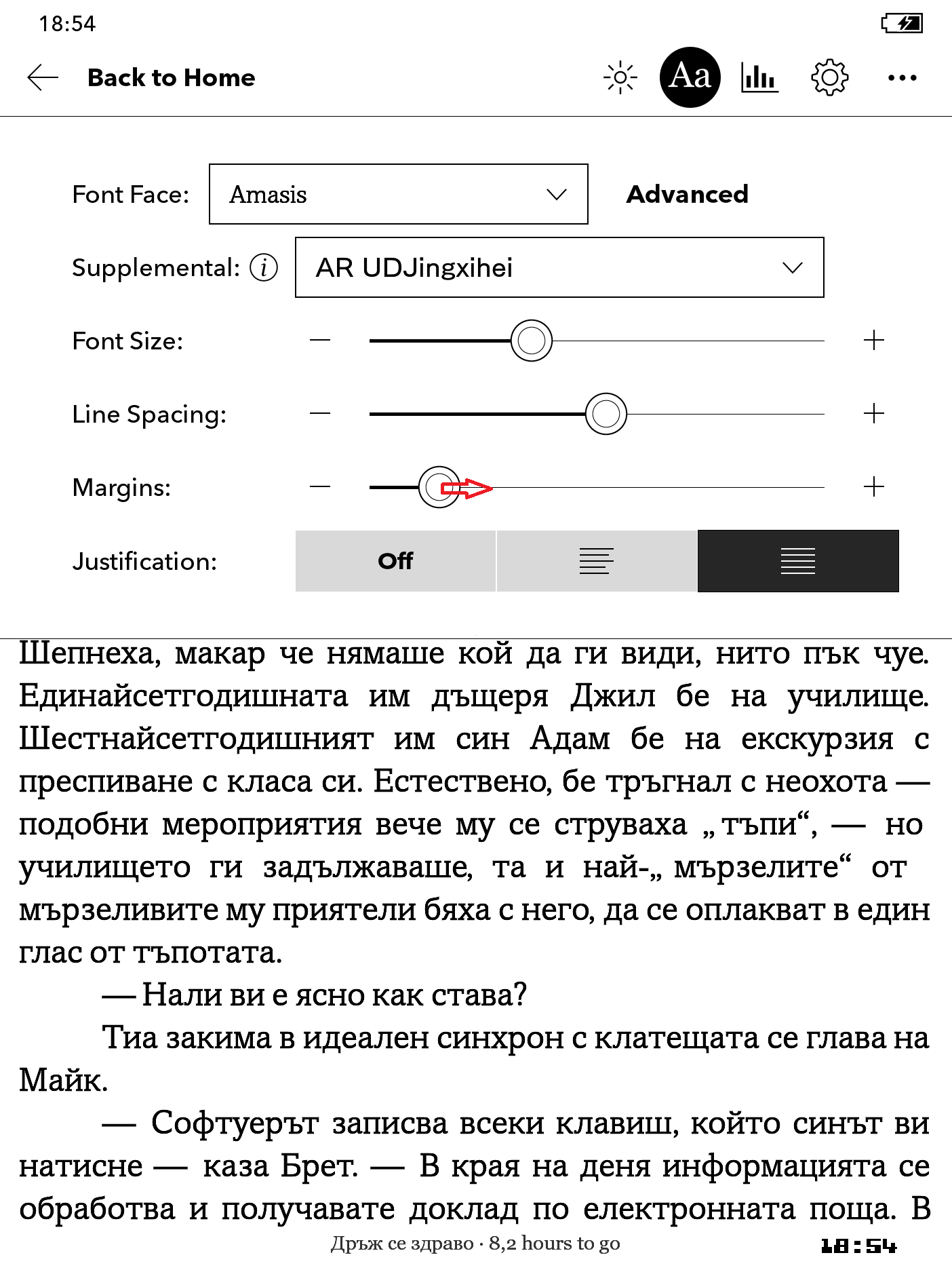 I installed the new firmware to try the new "pinching" features & here's what i've noticed: 1.If I pinch to enlarge the font and then pinch it back, the page doesn't return exactly to the state it was in before. I noticed that while zooming (pinching) the "Margins" slider moves as it pleases. If it was on the 3rd position - it usually goes back one step, by itself. If it was after the 3rd position - it goes to the max ... However, in both cases, the changed state of the "Margins" slider is not really reflected in the page, but it definitely prevents us from easily bringing back the initial state of the page with a pinch. 2. For example: When i'd finally set my page back to it's initial state, i've noticed that the "Margins" slider moved a step back. However, the margins of the page have not changed with it. I slide it one step further - no effect. I slide it again (further or back) - now it takes effect. I tried without My 24 line spacing values patch - the same thing - apparently, it's a firmware bug. |