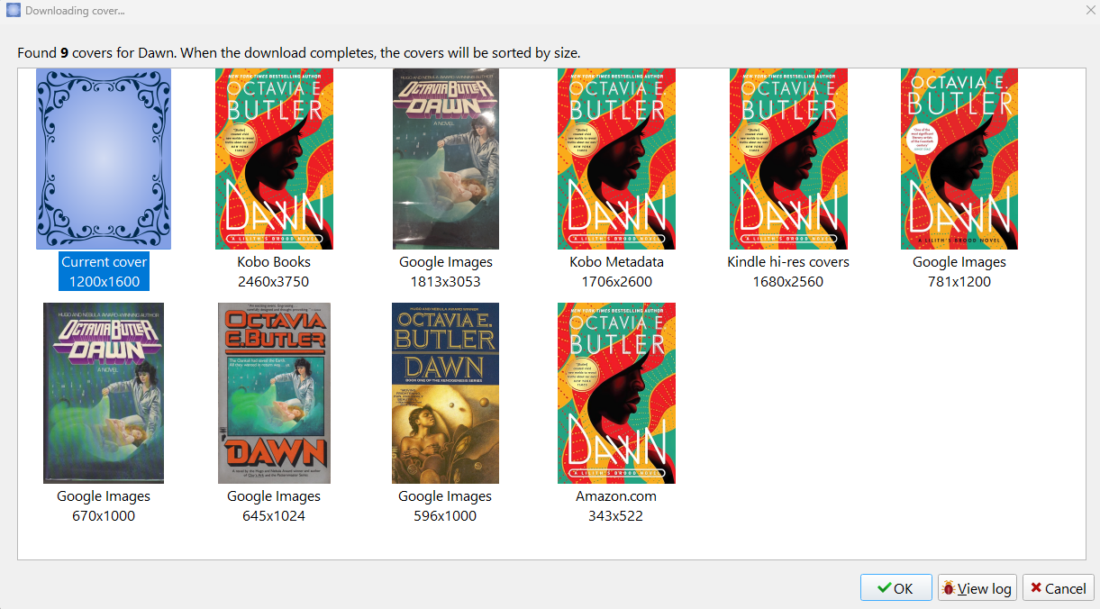 The eBook Dawn by Octavia E. Butler downloads the wrong cover. Here is the cover it's downloaded.
