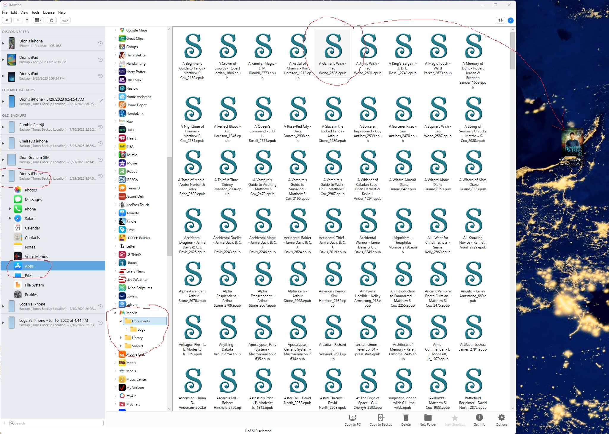 Here is a screen capture of exactly what I'm talking about. I took it about 2 minutes ago. I was able to use iMazing on a backup I did a few months ago. I dragged an ePub from the Marvin directory to my desktop...no problem. |