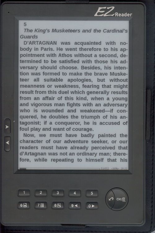 The last scan is from OpenInkPot (FBReader based), it does not honor the CSS for a chapter start, and the text starts with all caps. In OpenInkPot the TOC works either via following links from the in-lined TOC or by bringing up the TOC menu item and selecting the chapter from a list. This is the same behavior you see with Desktop FBReader. |