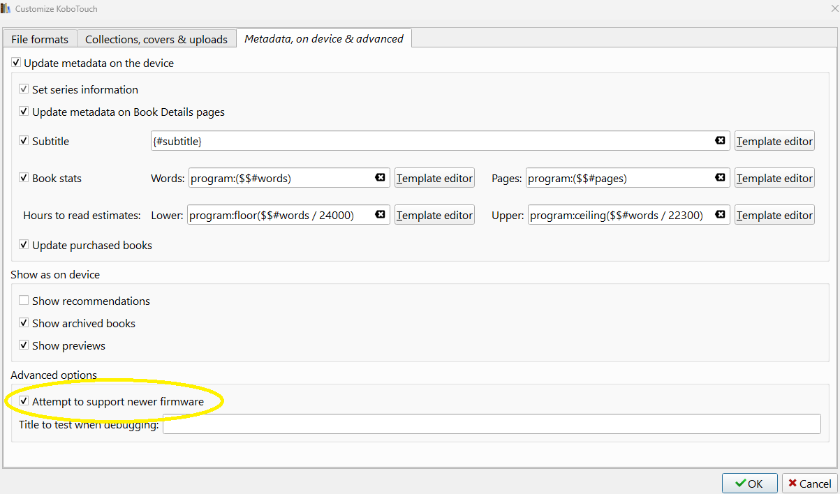 Do you have the Attempt to support newer firmware checkbox checked on the 3rd page of the KoboTouch/KoboTouchExtended driver configuration dialog?