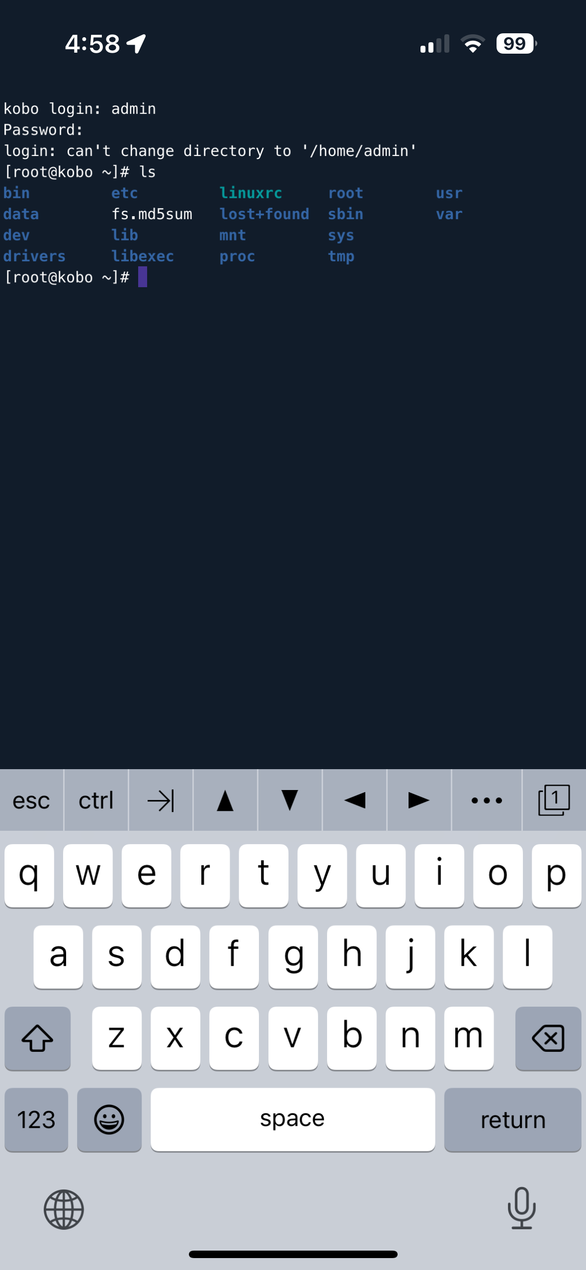 As far as commands go, Kobo uses BusyBox, so you're limited to the commands it supports, unlike with a full Linux distro. Thankfully, at least iwlist is available for diagnosing this. |