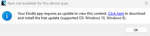 Interesting. I installed K4PC 1.39.2 (65383) and was able to download newer books in azw format. I then installed K4PC 1.38.0 (65290) and got the expected popup about Your Kindle app requires an update.... |