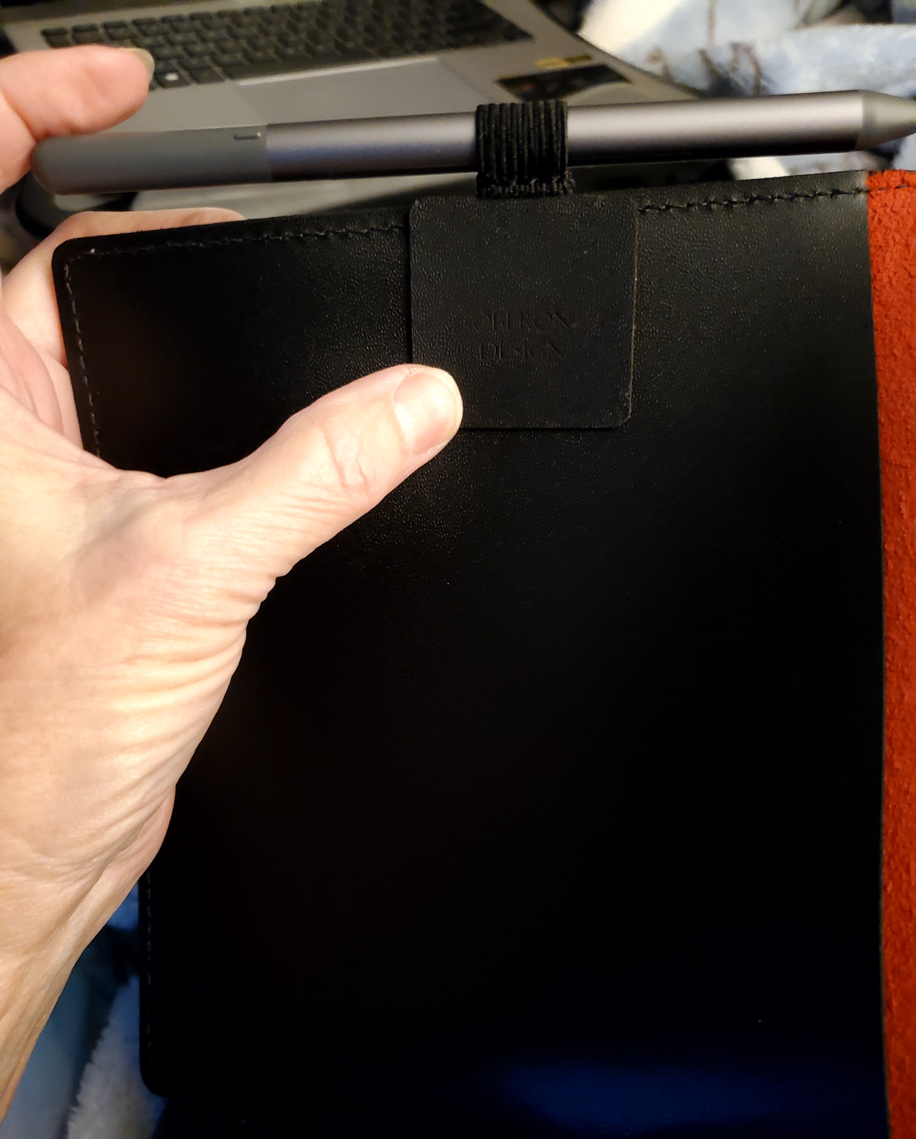 Pen holder will not fit on the spine, so I put it on the top. Cost is $5.00 but it is nowhere on the website. Call or email to order it. Black only. Has a sticky back. I do not have the correct pen, but I used another pen that works. Technically it is a pen holder, but I use it for the stylus. Ask for pen holder. Last edited by pypeke; 01-23-2025 at 03:14 PM. |