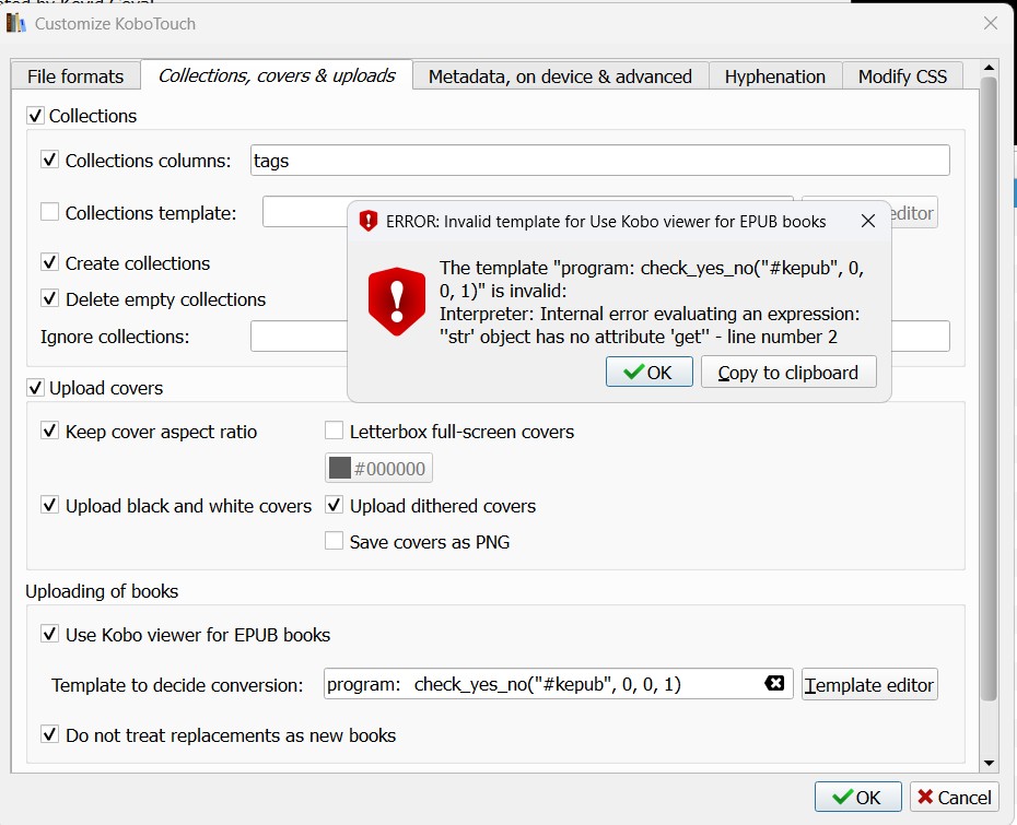 ERROR: Invalid template for Use Kobo viewer for EPUB books: <p>The template "program:
