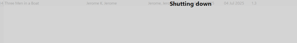 As can be seen my shut down time is 3.7 seconds, Aside: why do I get the messages about Ctrl+Alt+A? As soon as I installed 8.16 I set the Discuss book with AI shortcut to None. additional Environment variable CALIBRE_NO_NEW_DEFAULT_SHORTCUTSBR Last edited by BetterRed; Yesterday at 07:27 PM. Reason: clarity |