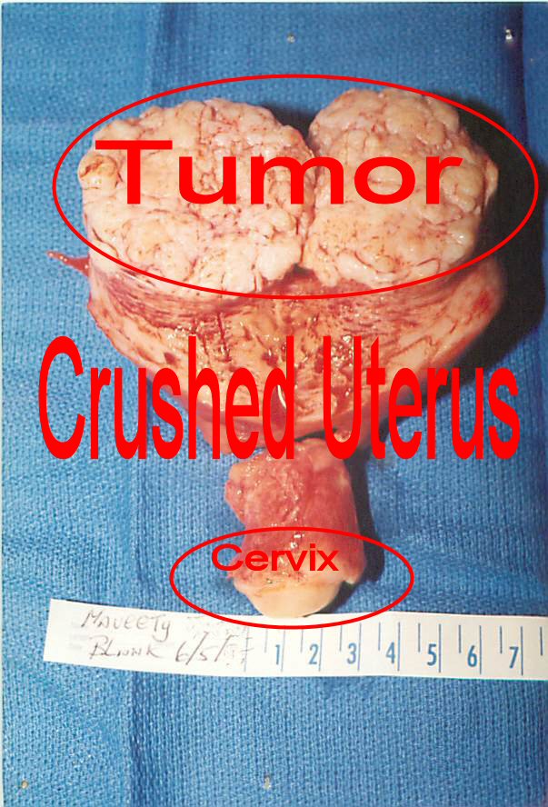 The uterus has actually been sectioned such that the portion attached to the cervix has been removed from the upper part of the uterus, which contained the tumor. The upper portion of the uterus, and the tumor, have been cross sectioned, with the two halves left attached. So, what you are looking at is two pieces of the organ, with the top piece splayed open. The tumor was essentially crushing my uterus. It was a little over 7 pounds when it was removed. Max, a bouncing 7 pound 4 ounce mass. Last edited by RickyMaveety; 04-14-2009 at 10:55 AM. |