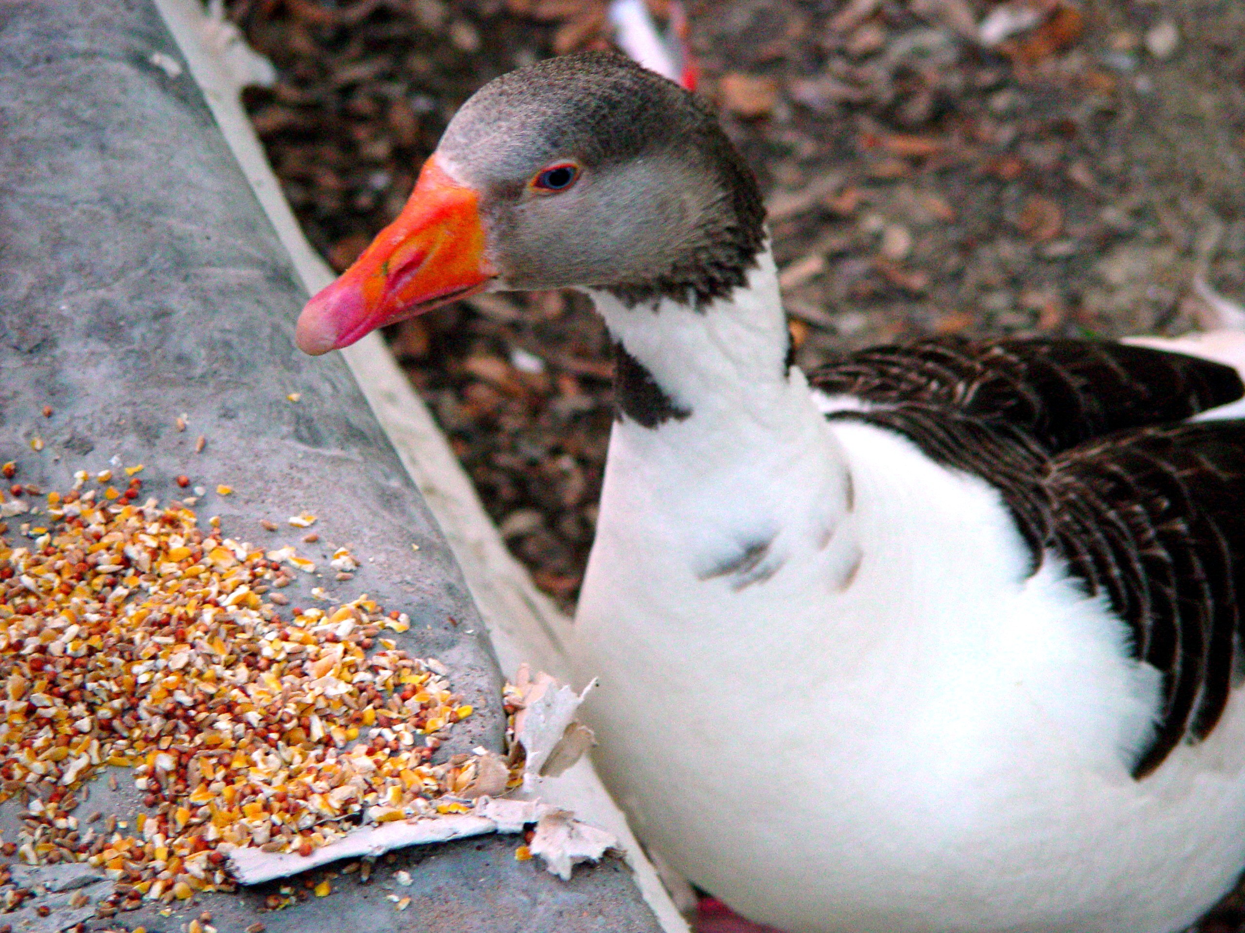 These "quackers" live at the our small neighborhood lake. Sometimes the little yellowish quacklettes wander off by themselves, as this one did. I guess they're more independent from the get-go, or they just get lost easily. After checking with the local feed store a few years ago, I've been feeding the ducks "cracked corn." They really like it. It stays on top of the water for a bit before sinking, and as it sinks, they just bob for it. I often just place a fistful on the ground for them when they're out of the water just walking around. You'd fit in with your quackin' cousins just fine here, daffy. |