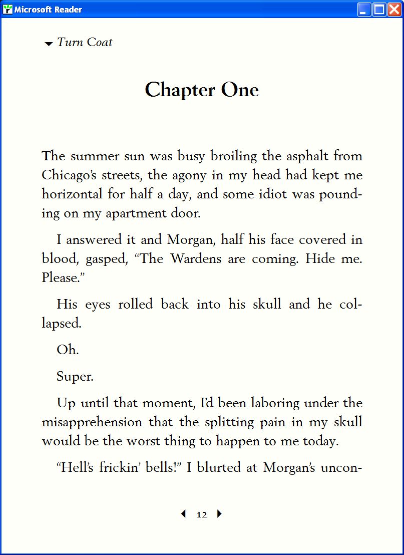 I'll be honest and say I'm not sure where that MS Reader copy came from. What I wanted to do was take a quick look at a copy of Turn Coat to see how bad it really is so I turned to the Darknet and found it. But, if I do like the series enough and get that far in reading it, I will purchase a copy legally.
