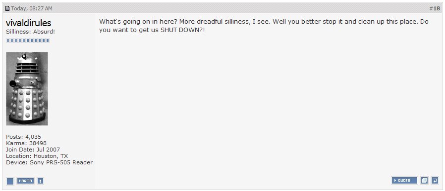 ![]() VR, you´ve been reported to the hijack patrol for bringing up seriousness in a thread that´s supposed to be silly. First warning. |