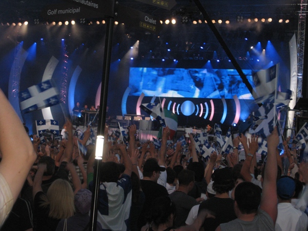 Très, très bonne!   Here's some pictures - I was quite far away from the stage, but seeing all the people was great - and this is just a fraction of the crowd, they say this morning we were more than 250,000... Last picture is of La Bottine Souriante, a traditional music group that I know WDE likes - but I don't really think you can actually see the band I'm so far away! |