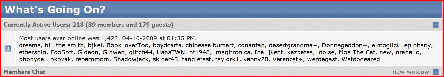 218 38 members + 183 guests I'm becoming really fond of this "snipping tool" It's fun to use..... I'll just have to find the under 200 one