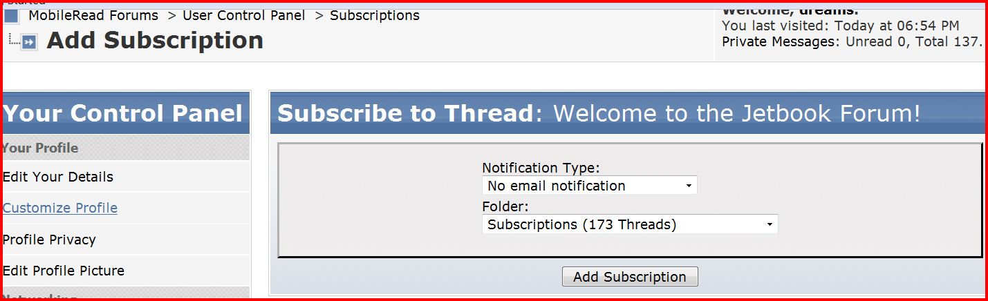 Also, many thanks to Dreams for the screenshots that will help me to learn my way around the forum. (Although I've 'registered' with many online forums in various fields, I've never used them much, but I'll try to follow this one more.) Next I hope to install Calibre and manage and convert the ebooks I add. |