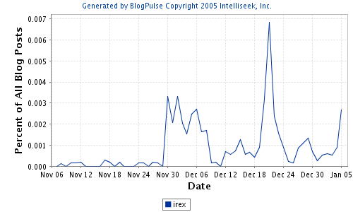 As time goes on and the Reader, Jinke Hanlin and iRex Iliad are released and people are buying e-books for these devices, I wonder if the mean(?) for mentions per day of for e-books will go up significantly (my statistics is rusty, so please forgive me). The mean mentions by day (MMBD) for "ebooks" appears to be between 75-100 mentions per day while the MMBD for "e-books" appears to be around 40-50 per day. The MMBD for "ebook OR ebooks OR e-book OR e-books" appears to be around 400 or so. All of these figures are based on the number of sites and links Technorati tracks, currently at 24.6 million sites and 1.9 billion links. This is all just anecdotal evidence, but these numbers could be used as a baseline to measure the popularity of these terms over time. Anyone with a background in statistics that can crunch the numbers and track these trends? Is there any other source of more complete data that could be used? (Edit: Found!) |
