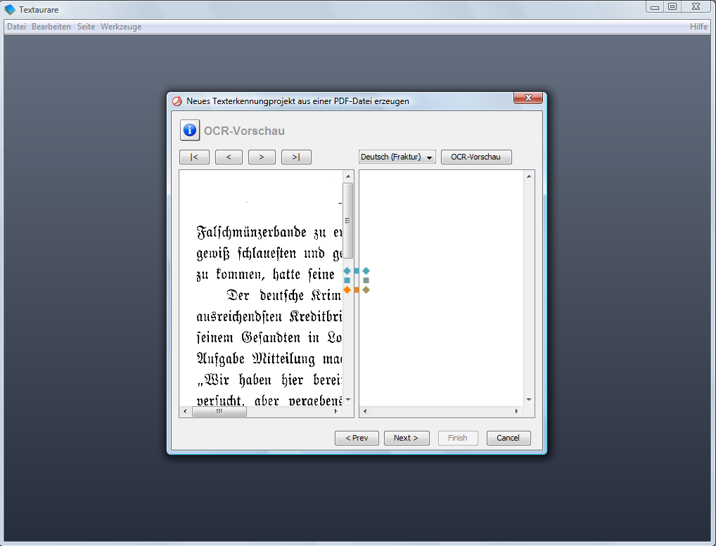 Ich habe noch ein paar Alghorithmen "herumliegen" um mehrspaltige PDF's (bzw. die Bilder davon) zu teilen und jede 2. Spalte auf eine weitere Einzelseite abzubilden. Wäre es sinnvoll eine Option zum automatischen "Auftrennen" mehrspaltiger PDF's einzubauen? Das Originallayout wandert dann natürlich ins Nirvana aber andererseits ist der OCR-Output (aufgrund der fehlenden Layoutanalyse in Tesseract) ansonsten ohnehin nicht wirklich zu gebrauchen. PS: Muss noch ein paar Bugs finden, dann gibt es wieder Screenshots! |