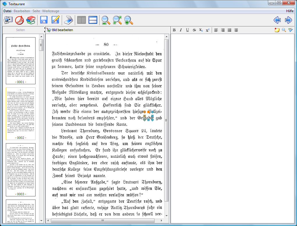 Ich melde mich gleich mal als Alphatester an. Meine Programmierkenntnisse tendieren gegen null. Ich kann mit verschiedensten Textquellen dienen - aber die meisten leider nicht in Fraktur. Würde das stupide Ausprobieren übernehmen. Als Vorschlag: die Buttonleiste editierbar machen, dann kann jeder die Zeichen, die er am häufigsten Korrigieren muss, selbst dorthin legen. Passiert mir beim Scannen, OCR und Korrigieren immer: das Anführungszeichenendzeichen (wie heißt das richtig?) wird immer falsch eingelesen: " “ ” ˝ - Möglichkeiten gibt’s genug... |