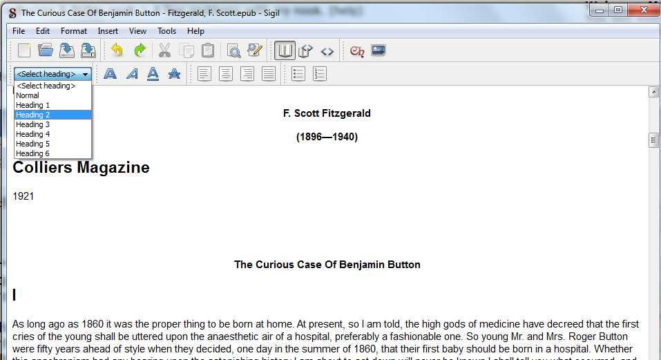 Also , when you say you hightlight in Sigil, when I do that and then select heading 2, it stops for a moment then changes to <select heading>, but doesn't appear to be changing the file. Does something else have to be done?