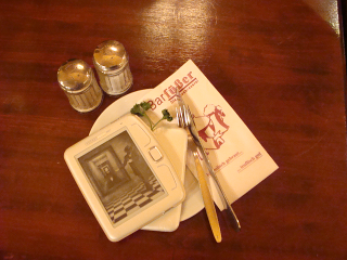 I just jumped on my train back home, about 10 people are still at the Barfuesser and continue partying. We all had a great time.Lots of nice people and a lot of ereading devices. I finally could try out a Kindle and we had some new PocketBooks 302 to play with.