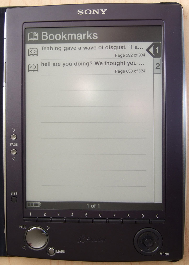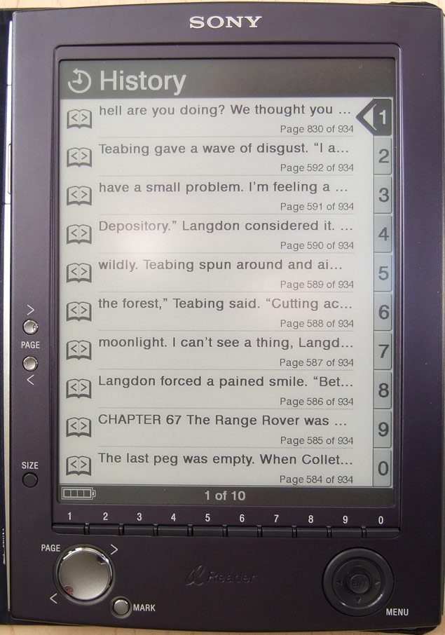 Is the words in each bookmark or history the first sentence of the first paragraph in the page? (I guess the file is RTF or TXT format; thus, the Sony Reader can easily catch the words. How about bookmark or history of PDFs?) |