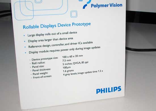 Let's not forget that Plastic Logic is not the only one to promise flexible or rollable e-paper. Another stronger contender is Philips Polymer Vision. Last time I heard of them (around January 2006) they were able to produce a 5" QVGA prototype using their display technology.