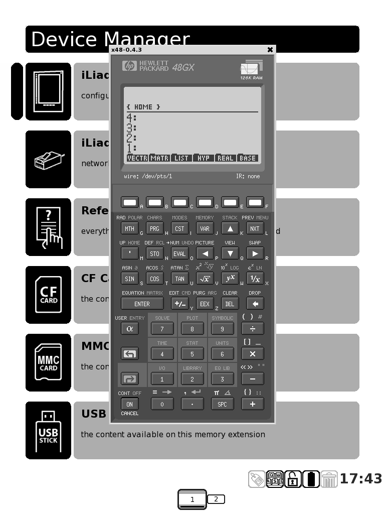 Extract the zip file into an MMC/CF card or into your iLiad's internal drive. Then with the [SHELL] hack installed navigate to where you extracted it and run the "run.sh" script. Please note, if you turn the calculator off? It turns off, and waits for you to turn it back on. ![]() To quit use the X button in the upper right. When you quit it saves its state and will come back right where you left it. |