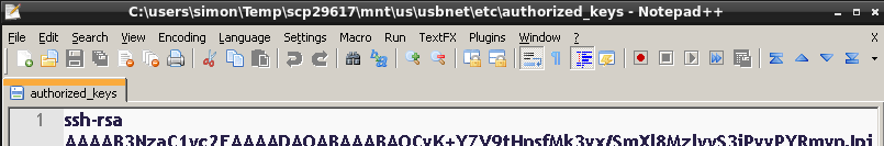 shove it in authorized_keys file (pictured in context) I forget if that is everything but it's enough to get you close. HTH Last edited by twobob; 11-23-2012 at 11:40 AM. Reason: pictures, spelling, all manner of fubar |