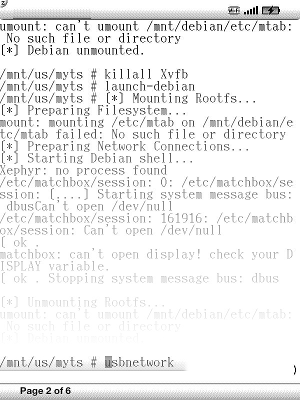 . (Although, technically, IIRC, there is a 'composite' Linux gadget driver, which can handle (all? some, at least) the different gadgets concurrently. I don't think anyone ever bothered porting it & implementing this on a Kindle, though).But, like twobob said, there are a wide range of tricks available to somewhat transparently access it as a proper volume while in usbnet mode. sshfs on Linux, for example .And, yeah, OpenSSH/dropbear pretty much just sits there mostly doing nothing, so, no worry on the power drain there .@twobob: cryzed has a PW, so, no kite/lp . Fortunately, the debug command is far more easily accessible on those things .