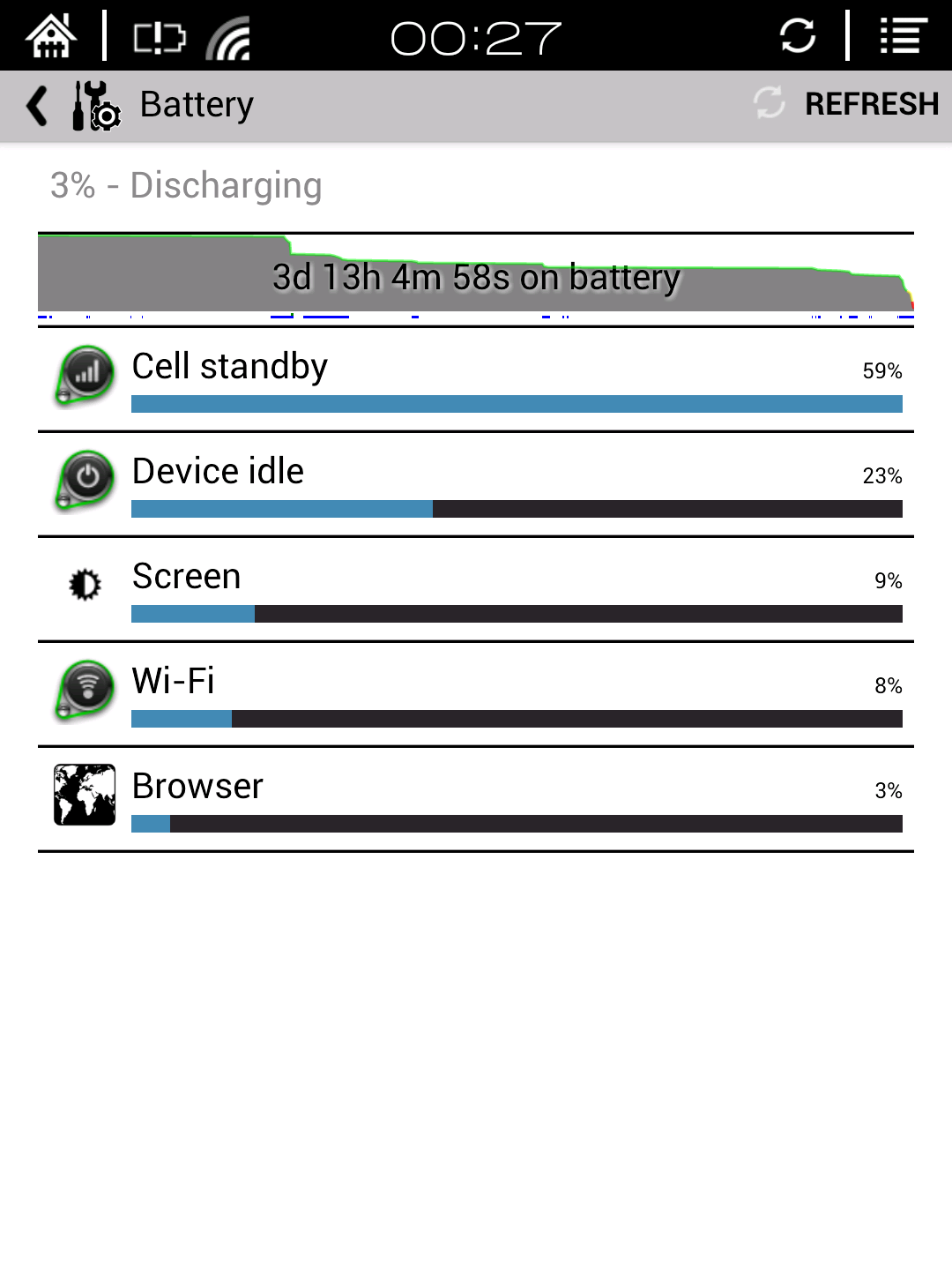 What looks stupid is that connecting to a computer (USB, to transfer books) for 1 minute brought battery from 100% to 65%. This happened right after disconnection. Also, going from 50% to 3% was very abrupt. The device was used yes, but it wasn't watching videos or anything... Otherwise, while screen is off, things look good I think ![]() Anyway I'm not complaining yet. Once I fix my TS problem I can gain root and start analyzing battery. I think this is fixable easier than the TS. |