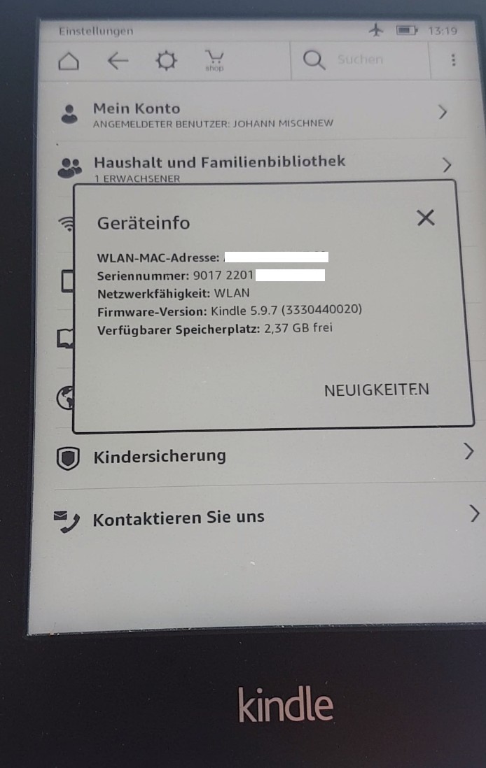 Device: Kindle Paperwhite 7th Generation - 2015 release.