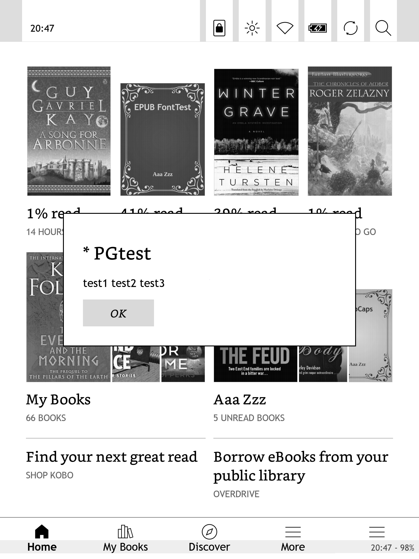 Everything seems to be working OK for me with v0.4.0 but the pop-up info display from one of my config options is no longer as "neat" as it used to be. I'm using this option to completely delete any existing screenshots from the Kobo followed by disabling the screenshot option Code:
