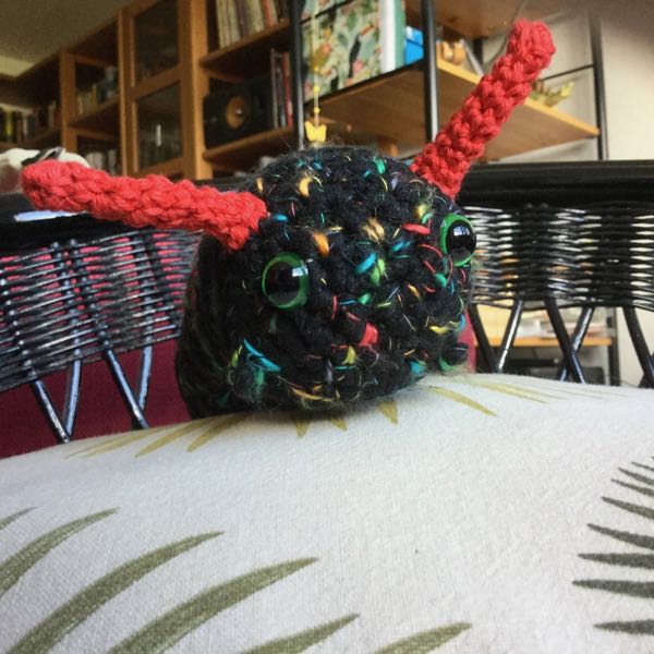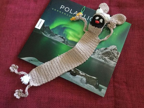 Die ist aus dem Buch „Bookies“ von Supergurumi. Die Anleitung gibt es aber auch bei Youtube. In dem Buch sind noch andere coole Lesezeichen, ich hab einfach mit einem angefangen, das einfach aussah.