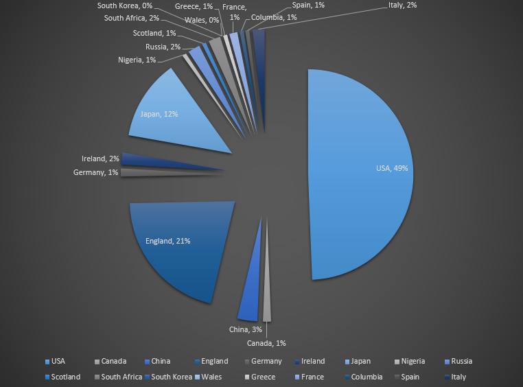 I was struck by this comment and your chart, so I took a quick count of the books I read this year and it was as I suspected; over half the authors were British. US authors were a distant second.