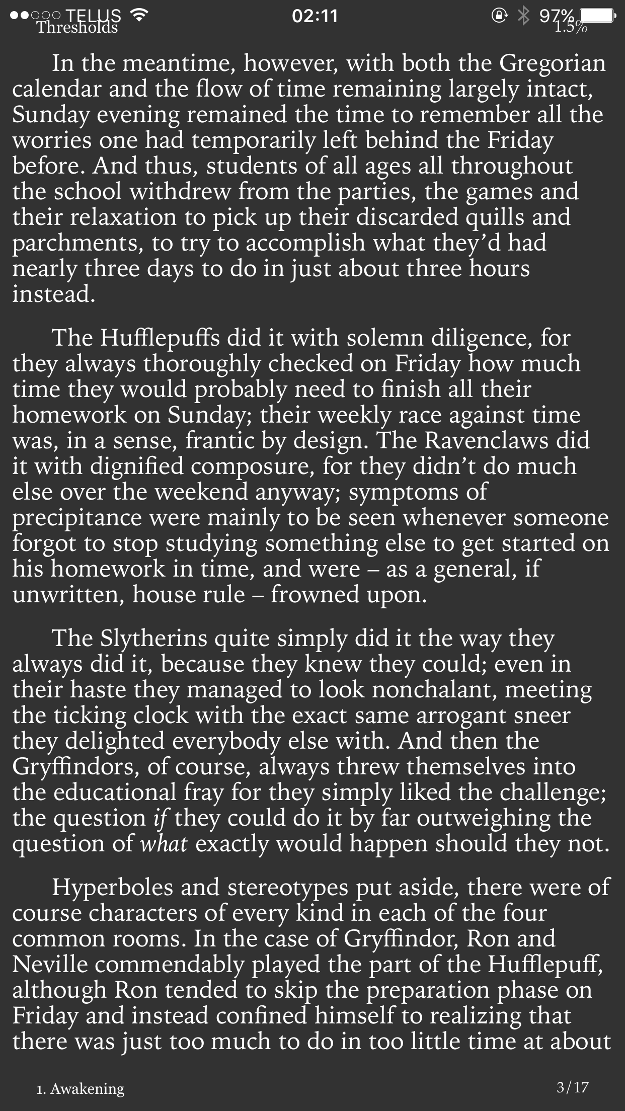 With a different book, I can now reproduce the screenshot like what you posted above. However, I can always get rid of the iOS status bar (the one on top with the clock) when I toggle the toolbar by tapping the screen center twice. Locking the screen and restarting the app seem to make the bug show up less frequently. I have never seen this bug before with MapleRead I wonder if this is yet another side effect of iOS 10.3.3 and the latest iOS SDK. Anyway, now that I can reproduce the bug, it should be much easier to find the fix. |