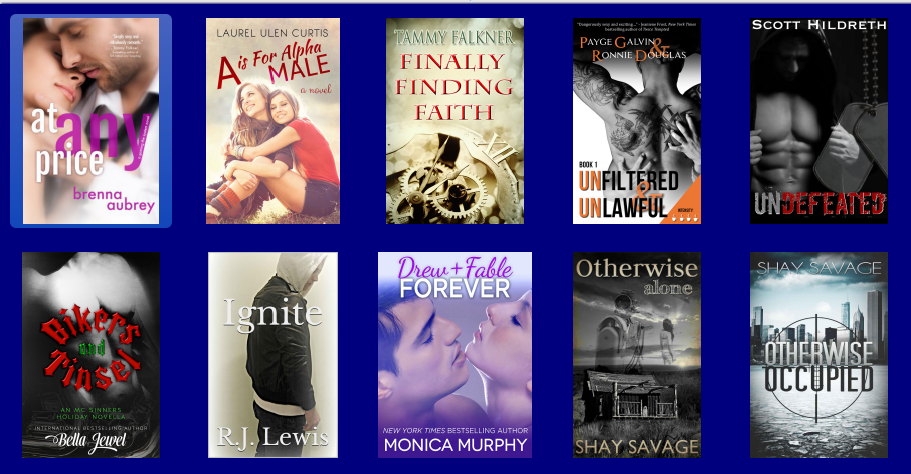 Look in my purchase list below, I've been watching this one for awhile and finally broke down! for thinking of me!My purchases this week, I did REALLY well 11 books under $10! Under budget and only 2 not on my wishlist, I am seriously cutting those down!: Books Read this week and my rating: Rome - Jay Crownover = 3.5 Brutally Beautiful – Christine Zolendz = 3 Seven Sons – Lil St. Germain = 2.5 A Blue tale – Sarah Dosher = 1, DNF Beck – Harper Sloan = 4 Living in Sin – Isabel Lucero = 2 |