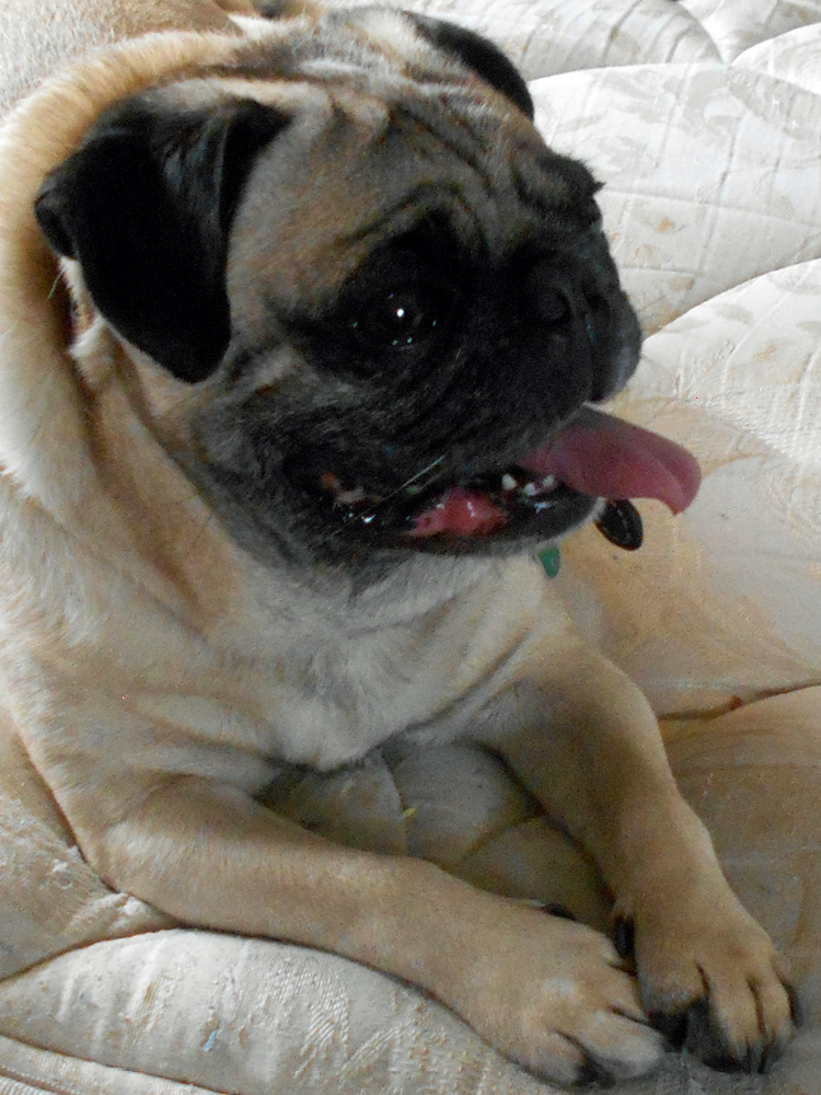 The wife and I just got back from a routine visit to the vet. Norton got a heartworm test ($48), a three-year rabies nooster ($25), and three months worth of Trifexus (combo heartworm preventative/flea and tick killer: $90). I had my wife let us off at the curb when we got into the neighborhood, and Norton and I walked the rest of the way. Here are some pictures I just took of the beast who takes all our money. If anyone's interested as to why the bed has no sheets, see this post in the Vent and Rant thread.
