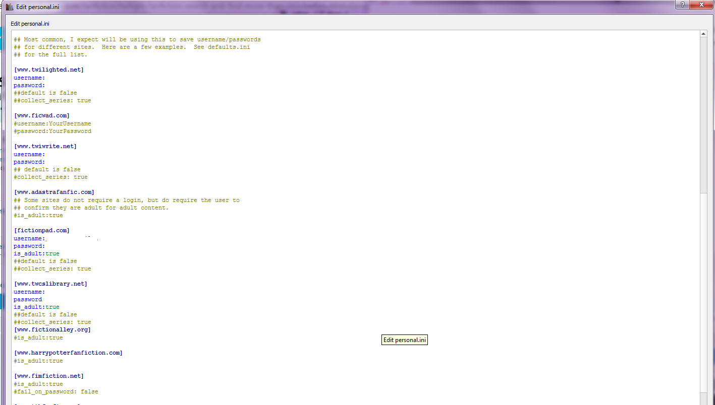 I am using the most recent version (2.14) of FFDL and it keeps losing my settings. It loses my custom column (status). The personal.ini keeps being reset to default so I lose what tags I want saved. It removes my settings for the reading list plugin.