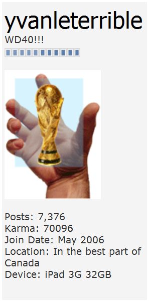 yvanleterrible's Avatar Posts: 7,370 Karma: 70096 Join Date: May 2006 Location: In the best part of Canada Device: iPad 3G 32GB 70K Karma |