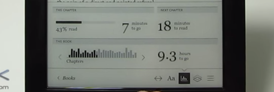 I saw a YouTube review (I think Nate's) showing this menu at the bottom of the book, together with font menus, etc but I don't see it on mine. Update: I found the YouTube review and took a screenshot of the in-book reading stats I want to see. Nate does mention that this isn't available for sideloaded epubs (not sure if he also means kepubs?). Last edited by xtine; 11-12-2014 at 09:57 AM. |