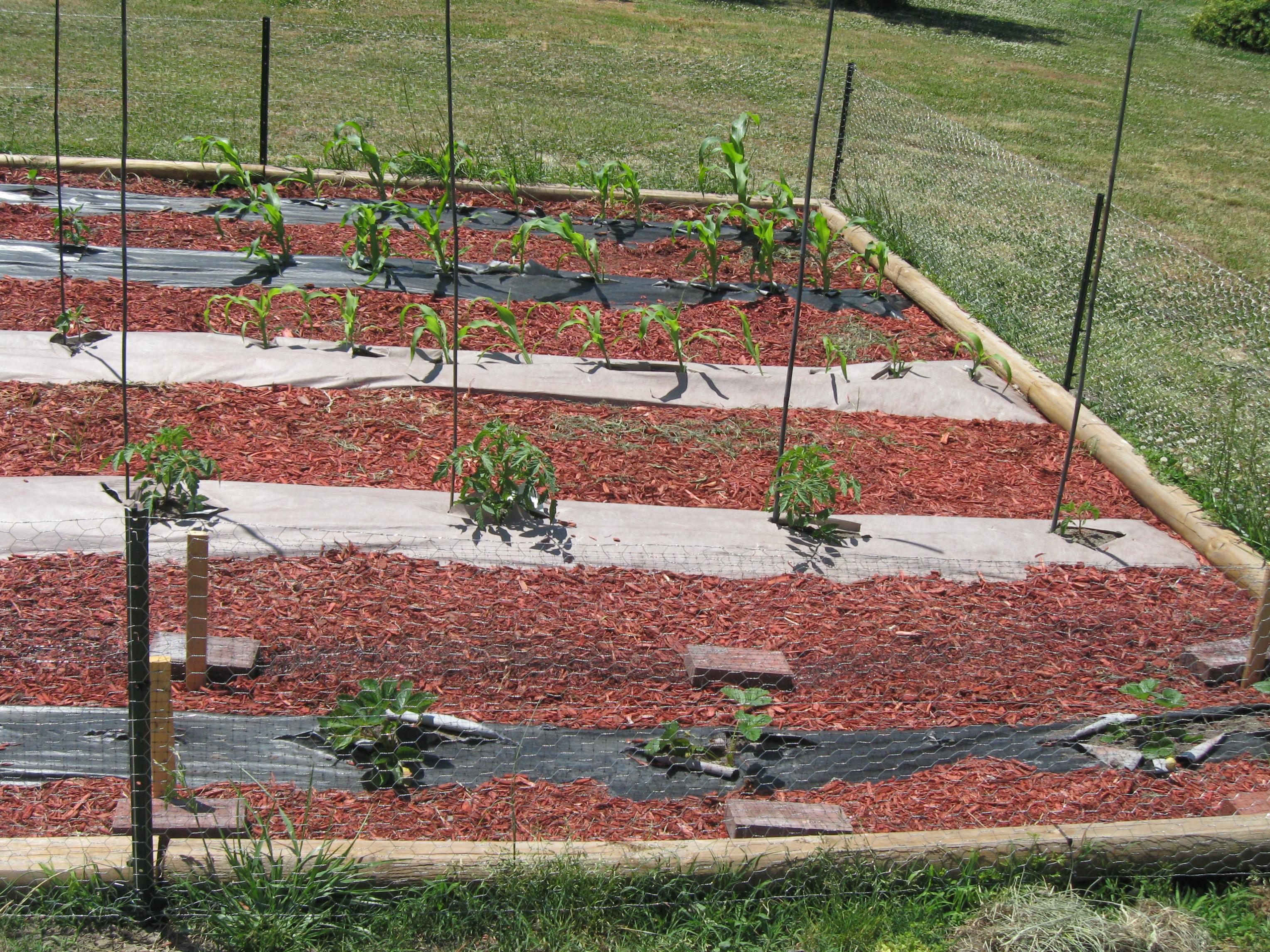 I finished the anti-rabbit fence around the garden, tripped over it and had to repair it already. One of the jalapeño plants died and I replaced it this morning. Had one more spot to fill, so I added an eggplant. We are now growing potatoes, strawberries, tomatoes, bell peppers, lima beans, banana peppers, jalapeños, cucumbers, squash, one eggplant, and corn. Norton's taking a break in the shade. He likes playing better than farming. |