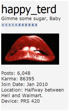 Congratulations happy_terd. You've posted an amazing 6,000 times in less than 6 months. Thank you too h_t for welcoming new members to MobileRead.