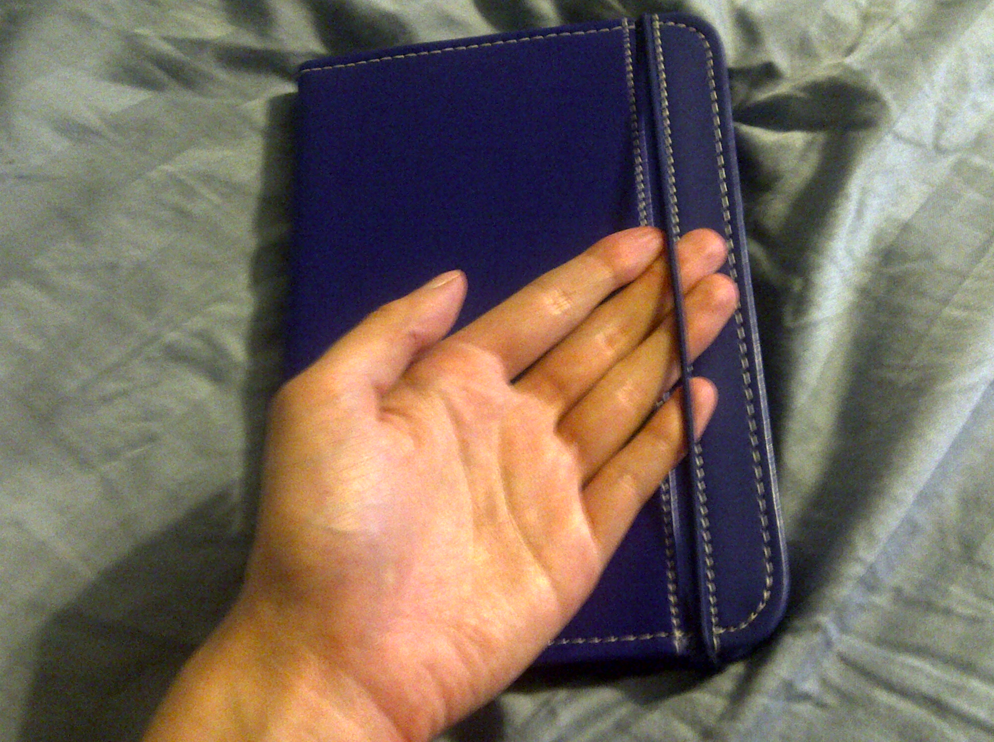 Okay folks, I got a chance to test out the mCover that I got yesterday.  Initial thoughts: 1. it had a funny smell when I opened the package...kinda reminded me of Icy/Hot. While not horrible, not really the most pleasant. The smell has remained all day. A co-worker suggested I put a dryer sheet in it, so I've got that cookin' right now....let you all know if that helps any. 2. Appearance - wow! From the pictures, I wasn't sure what color blue to expect but I was very happy when I saw it in person! This is a very rich, deep royal blue. Very pretty color. The inner pocket (inside front cover - see pics below) is a lighter blue than the lining or the outside, but still very nice. 3. Construction. This isn't the greatest case in the world, but it was only $14 and it is a temp case anyway. My main beefs? The lower corner tabs don't sit flush with the side of the kindle, especially the lower right corner (again, see pics) While I didn't notice any movement when carrying it around all day, I can see this potentially being an issue. Also, I'm not really a fan of the elastic band that keeps the cover closed. I can see this wearing out, as elastic is wont to do. Overall impression: Great appearance, funny smell (that I hope to rectify), some minor construction issues, but all in all not a bad little case, especially for the price! OH!! And it withstood the abuse that is my work bag, so I'm gonna go with 3.5/5 I may raise this to 4/5, depending on how my dryer sheet experiment goes...  EDIT: I forgot to mention weight!!  This cover is lightweight while still being fairly durable.  Not as light as a nekkid Kindle of course, but not a huge difference!  This was a concern for me because I have fairly small hands and carpal tunnel in my wrists - no problems with intermittent reading at my desk.   I usually read for a few hrs solid at night and didn't have any problems last night either. Last edited by bornmusician; 04-01-2011 at 09:53 PM. |