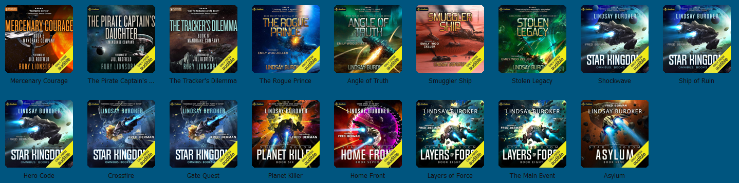 Yeah, I have read all of her stuff including the Ruby Lionsdrake titles. I decided with the big sale to snag some of the Audible Only series for eventual rereads. I don't plan to stay subscribed, but their three books for 99¢ each plus free $20 made for a too tempting offer. I was debating which ones to get when the sale happened and I went a little looney.