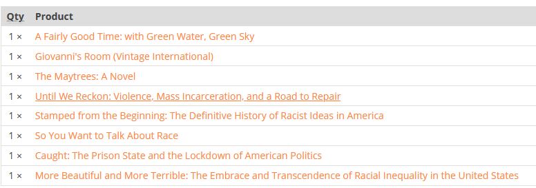Going on a bit of a binge. The first three are for the continuing read-alongs with A Public Space and the rest are my wife wanting to dig in on some issues.