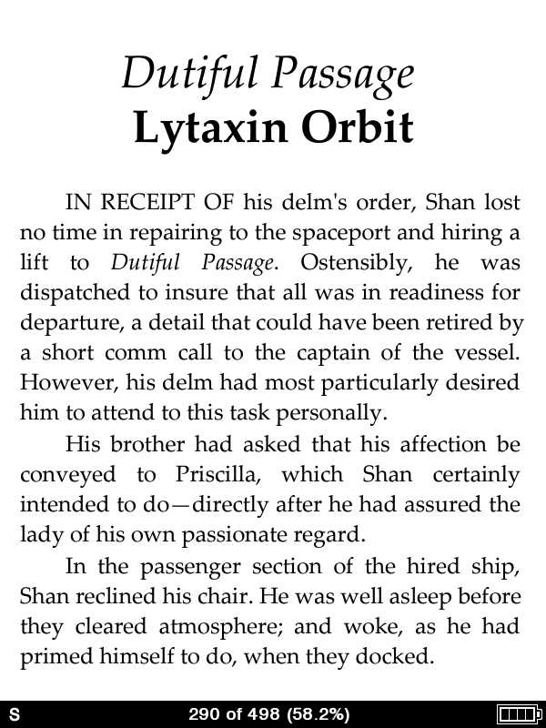 And I find the Charis font to be the opposite of "choppy and unreadable" (and that's exactly how I would describe Sony's default font). I wish I could do a screenshot of my own screen (how do you guys do that? It's part of PRS+?) so we would see if it looks the same, because my experience/perception/aesthetic is so very different. eP |