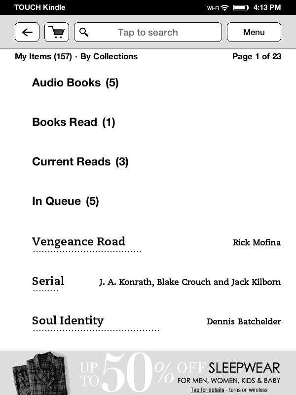 Device: Kindle PW, K4 Touch, iPad2, Samsung Galaxy S II