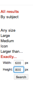 But, if you do the google search from your desktop browser, there is an option in the 'sizes' part of the sidebar to do a search for images of an exact size. The T1's screen is 600 pixels wide by 800 high, so this makes it easy to get perfectly sized images for the T1. A screenshot of the sidebar is attached. For some reason, the options don't appear from Google when you're using the T1's web browser. |